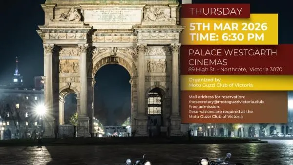 The Moto Guzzi Club of Victoria has made this evening accessible to all members and friends of the Eagle, fully covering the costs for booking an 89-seat cinema. Admission is free, but given the limited capacity, participation will be on a "first-come, first-served" basis. It is therefore essential to secure your spot.